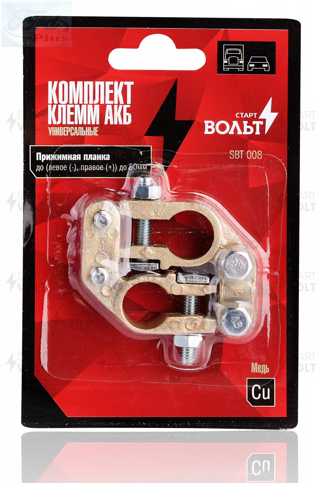 Комплект клемм АКБ сплав цинка и меди, прижимная планка (левое (-), правое (+)) до 50 мм