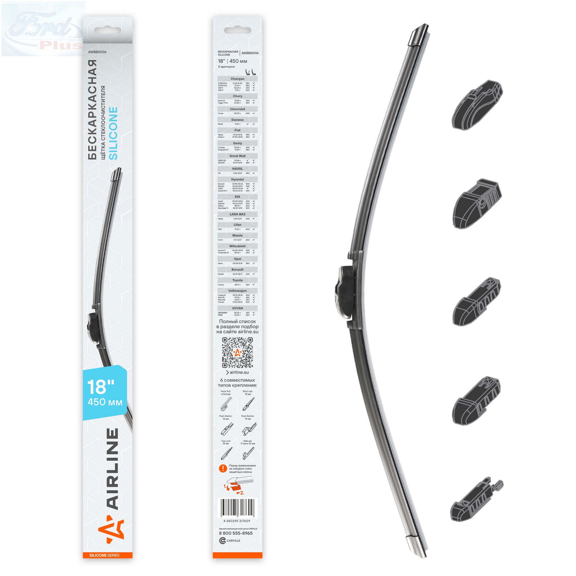 Щетка стеклоочистителя бескаркасная SILICONE 450 мм